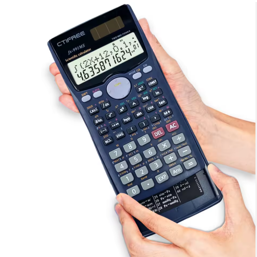 This scientific calculator has various 405 functions, some of which are described on the inside of the lid.