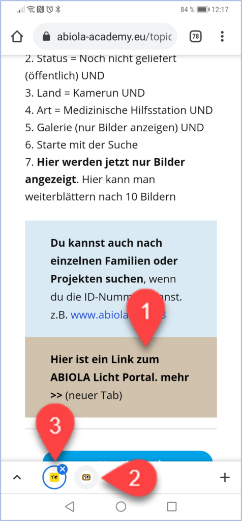- Dann wird bei dem Browser auf deinem Smartphone ein zweiter Tab (Reiter) angezeigt. Der Inhalt vom Link wird angezeigt.