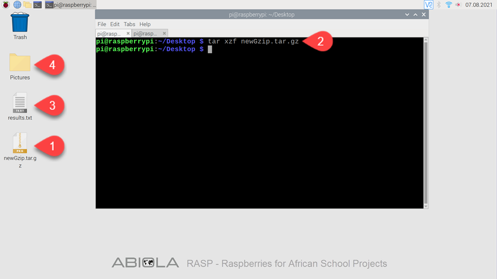 Im vorherigen Abschnitt hast Du die Datei im gzip-Format komprimiert, jetzt extrahierst Du die gzip-Datei wieder mit dem Befehl tar xzf.