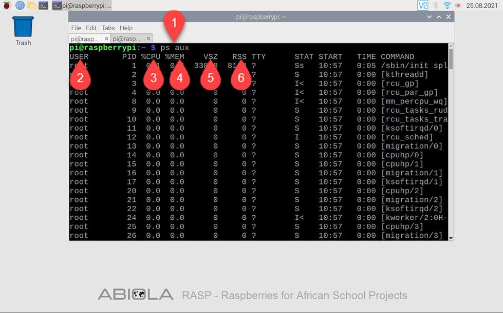 6. RSS: Dies ist die Menge an physischem Speicher(RAM),die der Prozess beansprucht (gemessen in Kilobyte.)